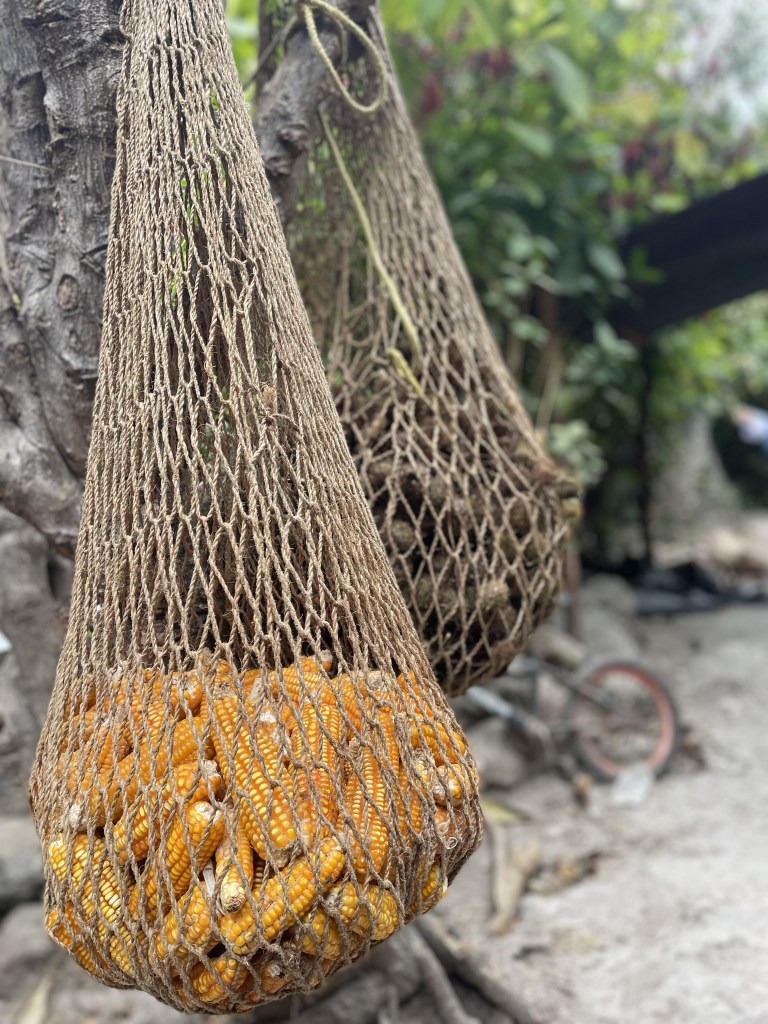 «No saqué ni maíz ni frijol», dice Rosalía, mientras señala unas pocas libras de frijol que se asolean sobre un costal en el patio de su casa.